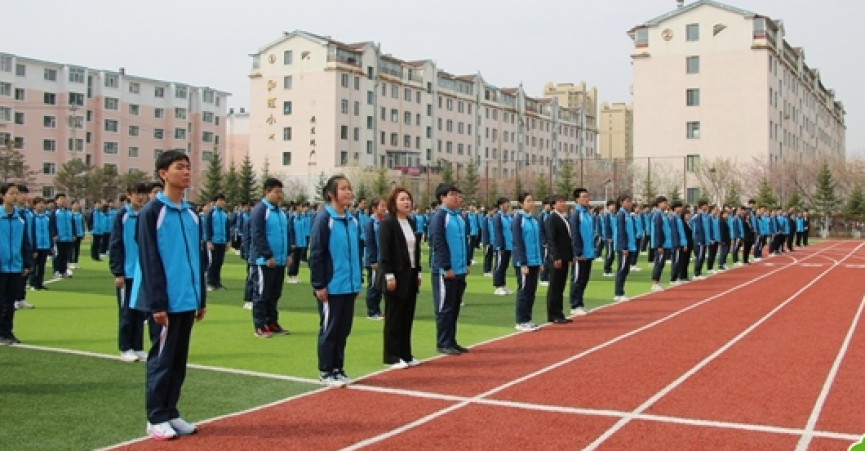 4月23日,延吉市教育系统党旗传递活动第8站在第八中学进行。
