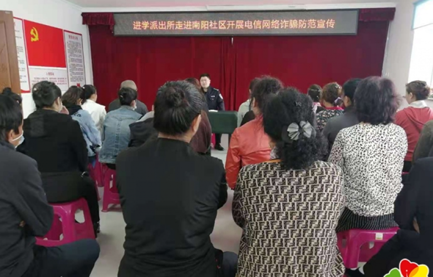 近日,延吉市公安局进学派出所副所长郭猛及辅警高一明、王迪走进进学街道南阳社区开展防范电信网络诈骗普法宣传活动。“感谢民警来社区宣传防范电信网络诈骗的小知识,我们以后会提高警惕,保护好自身钱财安全。”居民们纷纷对民警表示感谢。