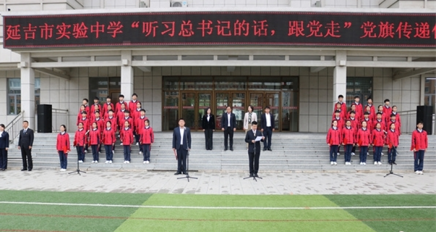 5月7日,延吉市教育系统党旗传递活动第14站在延吉市实验中学举行。