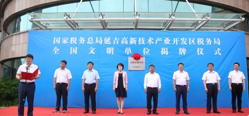 7月2日上午,国家税务总局延吉高新技术产业开发区税务局举行“全国文明单位”揭牌仪式。
