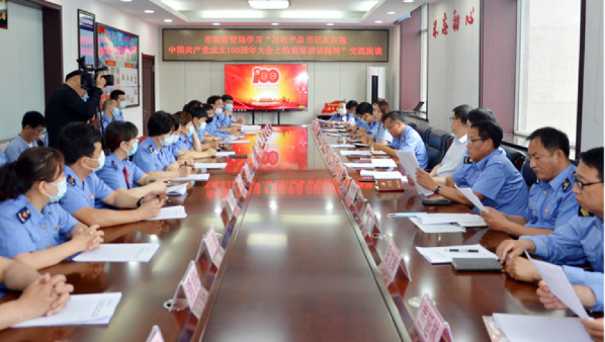 日前,延吉市市场监管局召开学习贯彻落实习近平总书记在庆祝中国共产党成立100周年大会上的重要讲话精神座谈交流会。局党组成员、主任科员、各部门负责人参加会议。