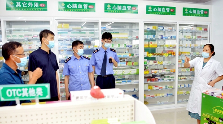 检查过程中,执法人员还来到餐饮店、药店详细查看扫码、测温、戴口罩等疫情防控要求落实情况,督促餐饮从业人员店内接待人数不得超过核定量的50%,药店禁售退热、止咳、抗病毒、抗生素等药品。