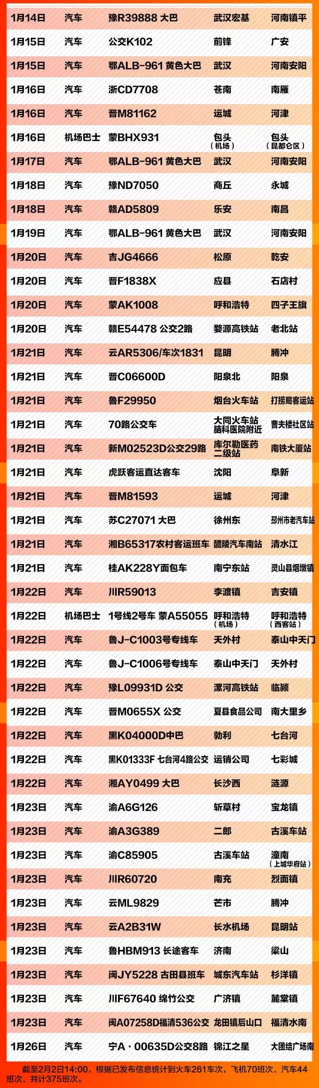 紧急扩散!这375个车次、航班发现患者,急寻同行人!