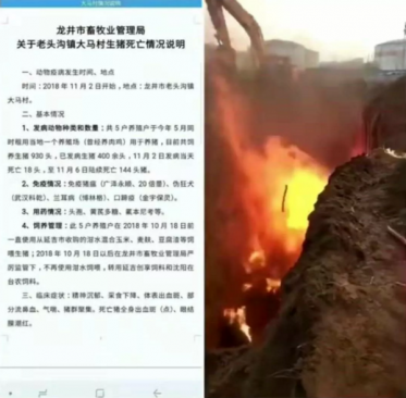 近日,网络上流传名为“龙井市畜牧业管理局关于老头沟镇大马村生猪死亡情况说明”和焚烧病猪的视频系虚假信息。