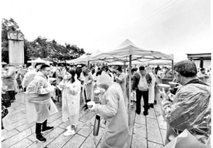 徐雷表示,老君山海拔较高,到了秋天降温很快,10月5日上午老君山上还出现了降雪。“以前我们看到有些游客从自家带着火腿肠、面包等来老君山游玩,到了这里,吃的都冷了,我们想着天气虽然冷,但我们给游客提供1元的午餐,将一些温暖传递给游客,也能够解决旅客的一些困难。之所以设置1元的收费标准,是为了避免一些人凑热闹拿取食物,通过设置一定的门槛减少浪费。”