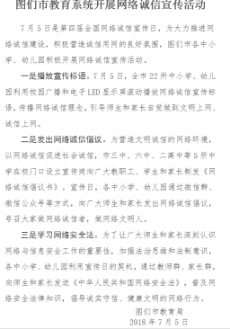 各中小学、幼儿园积极开展网络诚信宣传活动。