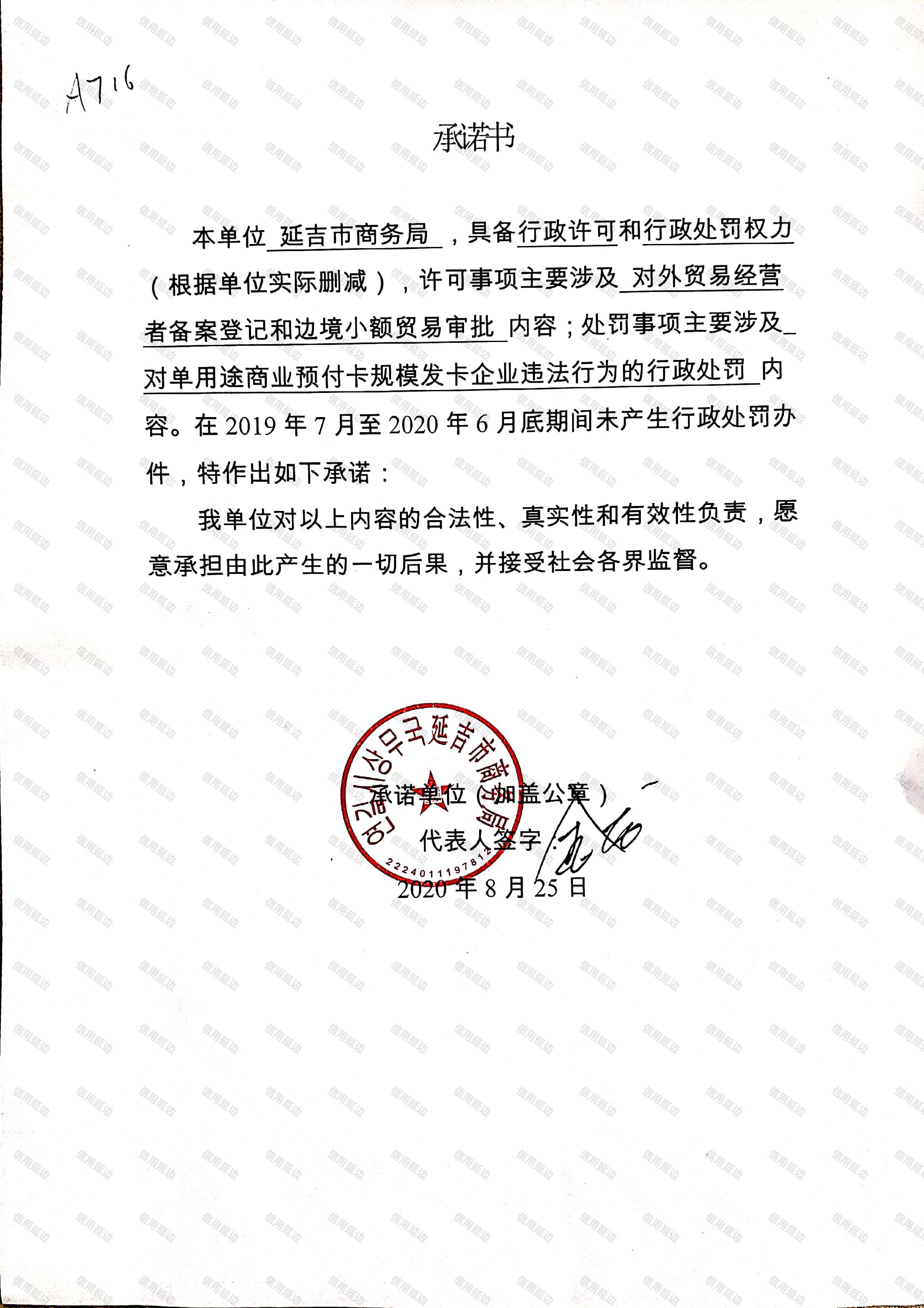 信用承诺书编号: 2224010100012 承诺事项: 有双公示职能,未产生办件